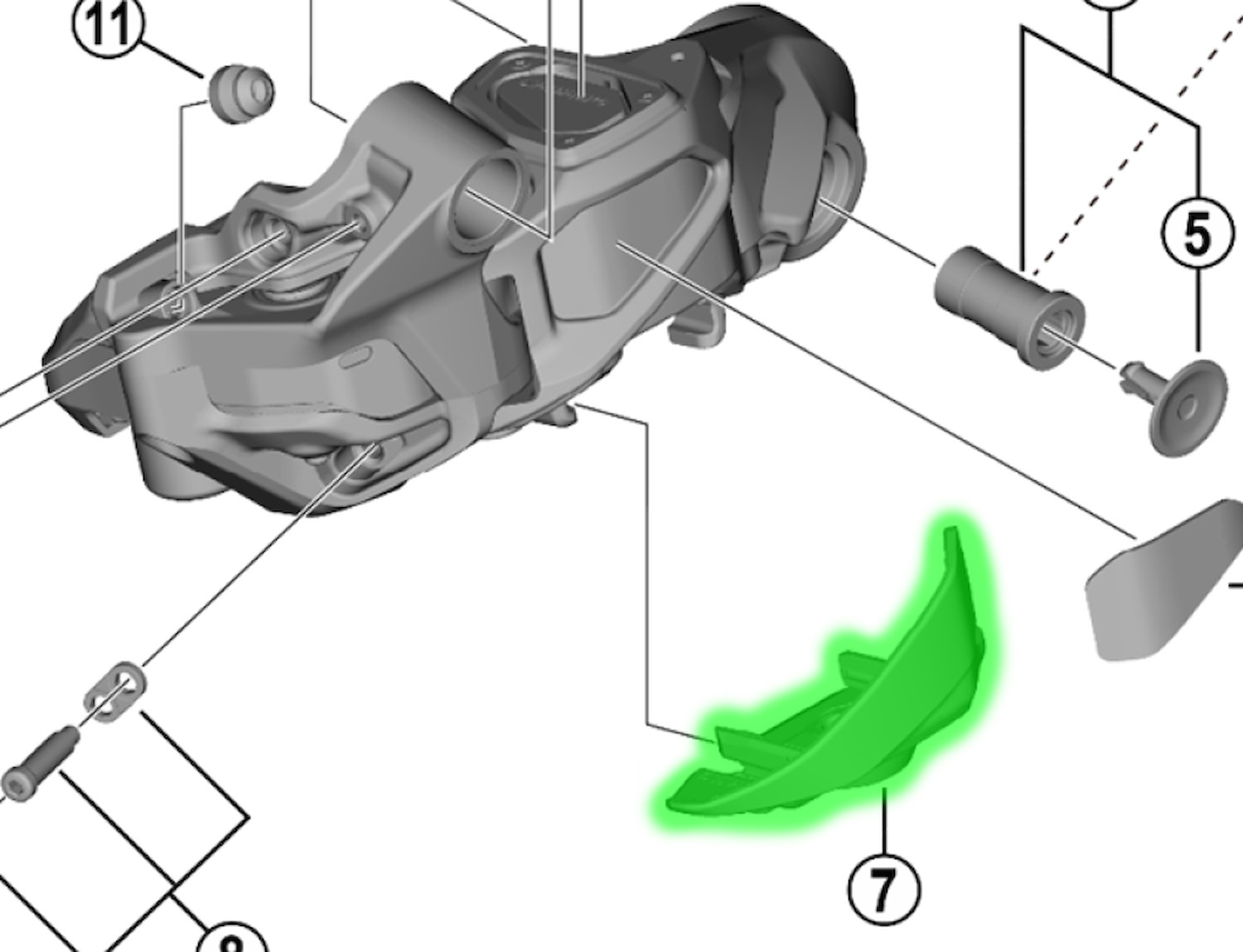 Shimano battery holder for both SGS and GS versions of SHIMANO XTR DI2 RD-M9250 rear derailleurs.