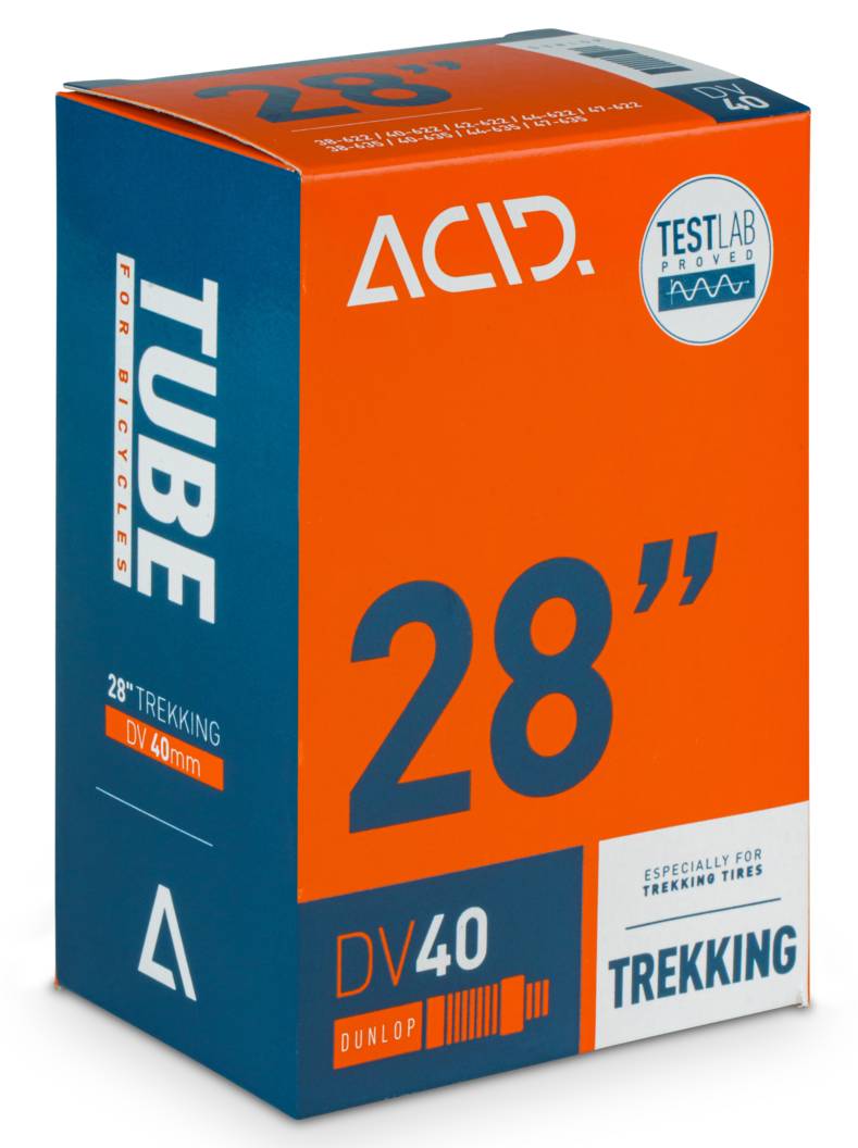 It's a standard 28" tube with Dunlop 40mm length valve. STANDARD - doesn't mean ordinary: quality rubber compound combined with even wall thickness makes ACID tubes reliable and durable. ACID tubes were tested in laboratory!For standard 28" trekking, hybrid, city tiresFor tire width (ETRTO size in mm): from 38-622 to 47-622, as well as for Holland bikes from 38-635 to 47-635Valve type: Dunlop (DV)Valve length: 40 mmMATERIAL: rubberWEIGHT: 202 g