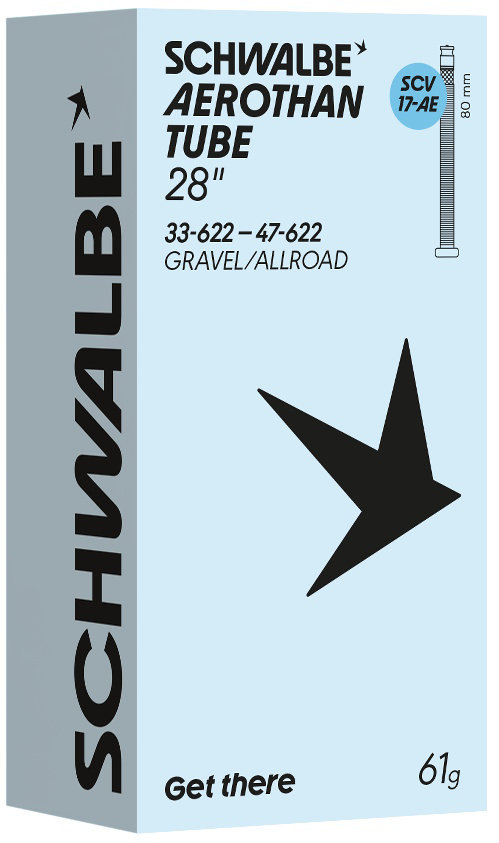 Schwalbe Aerothan Tube with Aluminium Valve Stem – light, stable and sustainable. Schwalbe Aerothan Tube with a robust aluminium valve stem for greater stability and top performance. The tube combines low weight with high puncture protection and actively contributes to the circular economy.