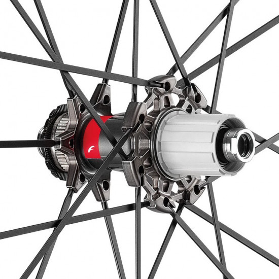 MONOBLOCK HUB FOR DISC: The rear hub of a top-quality disc brake wheel is a technical problem to be solved. Fulcrum’s R&D department found itself facing a fundamental choice: on which side to put the oversize flange of the Two-to-one system? Disc or sprocket side? Without question - must stay on the sprocket side. To combat the loss of braking power from flex and torque of the connector between the two sides of the hub, a special one-piece system has been devised with internal stiffening ribs.