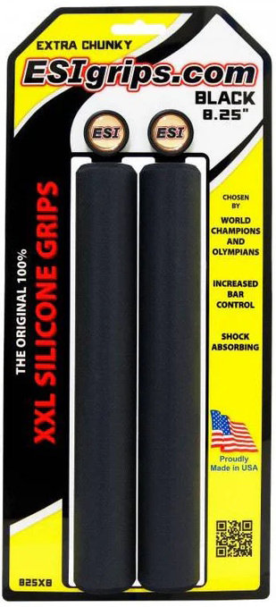 The thickest ESI grips available. ESI Extra Chunky XXL grips are recommended for riders prefering wider handlebars as well as shock absorbing characteristics. The grips are made of silicone and ensure a sovereign handlebar control. With 209 mm, the Extra Chunky XXL are over 60% longer than standard ESI grips. Made in the USA.