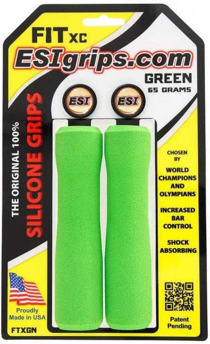 ESI's Fit XC grips are designed for a completely natural hand position on your handlebar. The design balances the pressure that your hands exert onto the handlebars, increasing bar control dramatically. Fit XC grips weigh 65 grams per pair. The grips are made of silicone. Made in the USA.