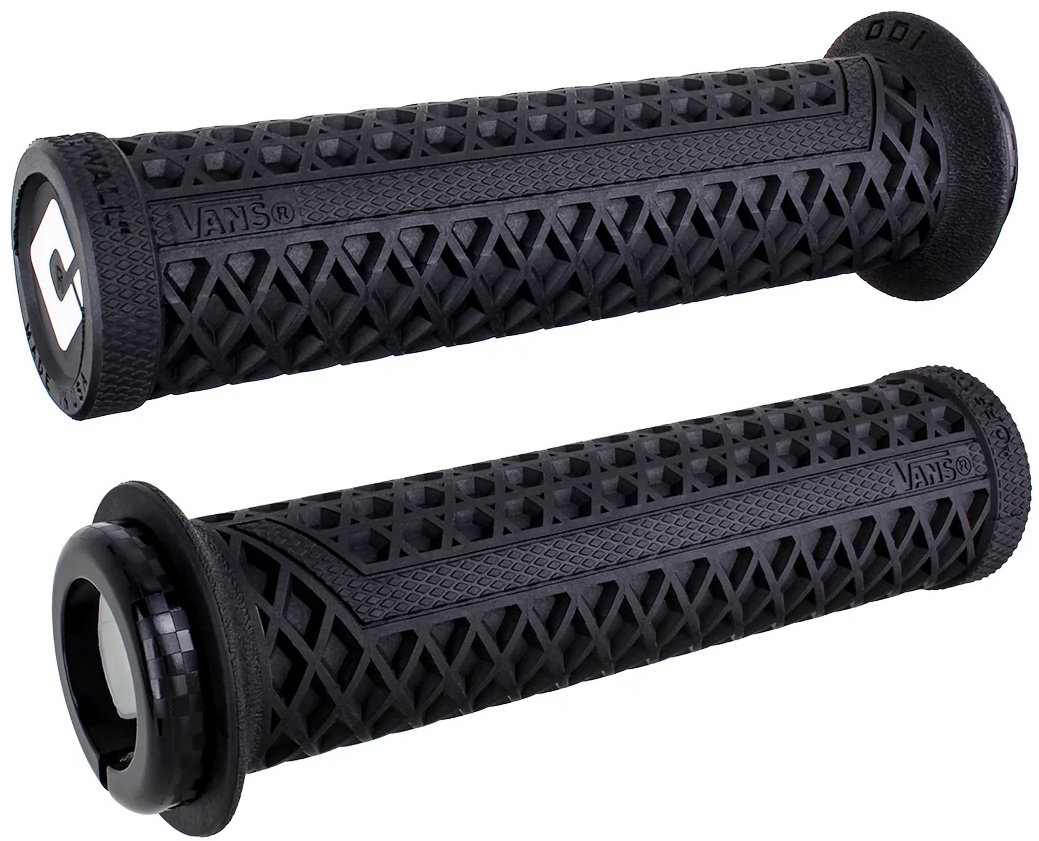 Two California Originals have teamed up to bring you an updated version of one of your favorite grips. The new Vans v2.1 Lock-On Grips feature a new single-clamp design for simplified installation and an updated waffle pattern for better comfort and control. The grips are constructed from ODIs proprietary materials and are available in six awesome colors with custom checkered clamps in coordinating colors. This modern take on the Vans grip adds updated features to the classic design while still providing the rider with the distinctive feel that they have come to love.